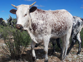 | Nguni bees is baie gehard en goed aangepas om gras en bossieveld te benut. Hulle is ook baie vrugbaar en kalf maklik. 'n Lae onderhoud, mediumraam bees met uitstekende temprament, wat maklik en lekker boer. |